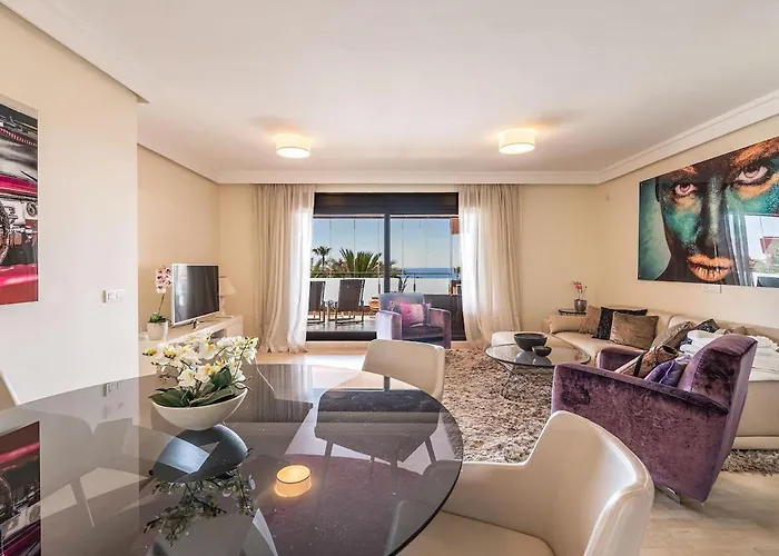 The spacious Beautiful Apartment In Residential Complex Estepona is 9 minutes' walk from the Cueva del Gato cave and welcomes guests with a sauna and an indoor pool. This apartment comes with an outdoor swimming pool and a terrace overlooking the sea.